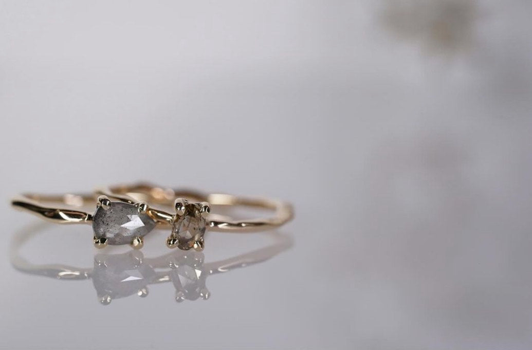 The "Charm Series" has delicate arms, so we recommend stacking the rings together, and Herkimer diamonds and oil in quartz are natural stones that are easy to pair with other rings.