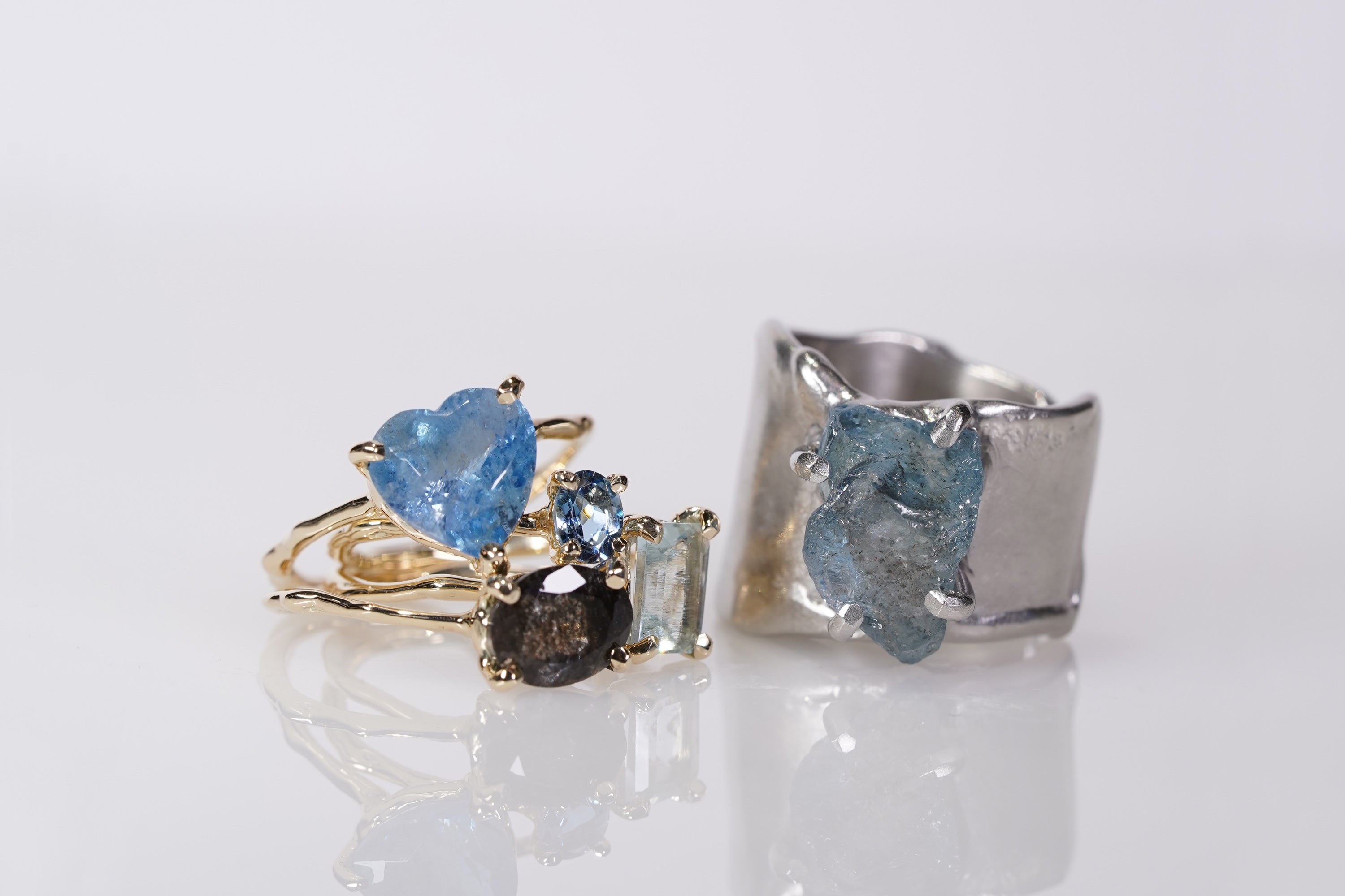 This time, there are rings in a range of vibrant blues and muted colours, and each one is unique.