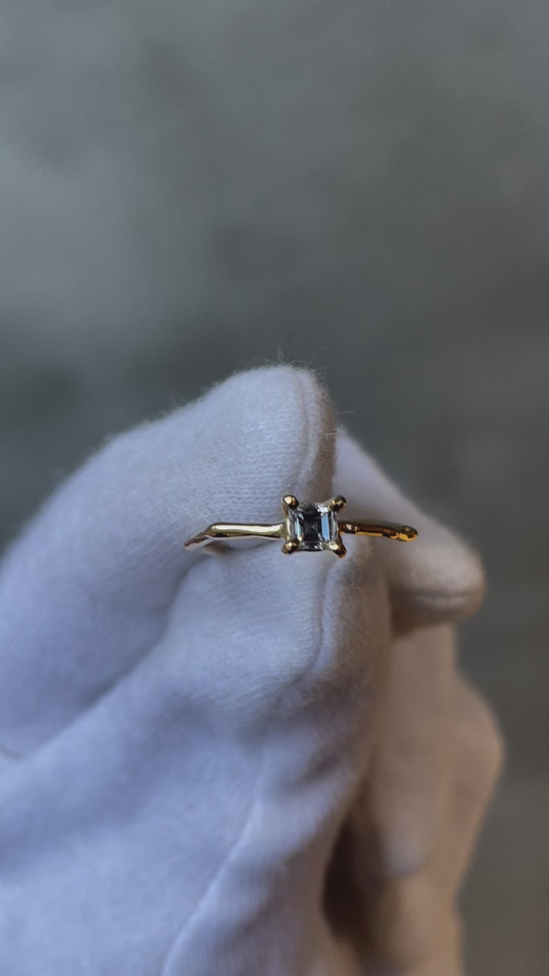 This ring has the same distinctive soft arm as Lamie's popular natural stone collection "Charm". It is designed to be easily stacked with the wedding ring, SYN Melts, which has the same image.