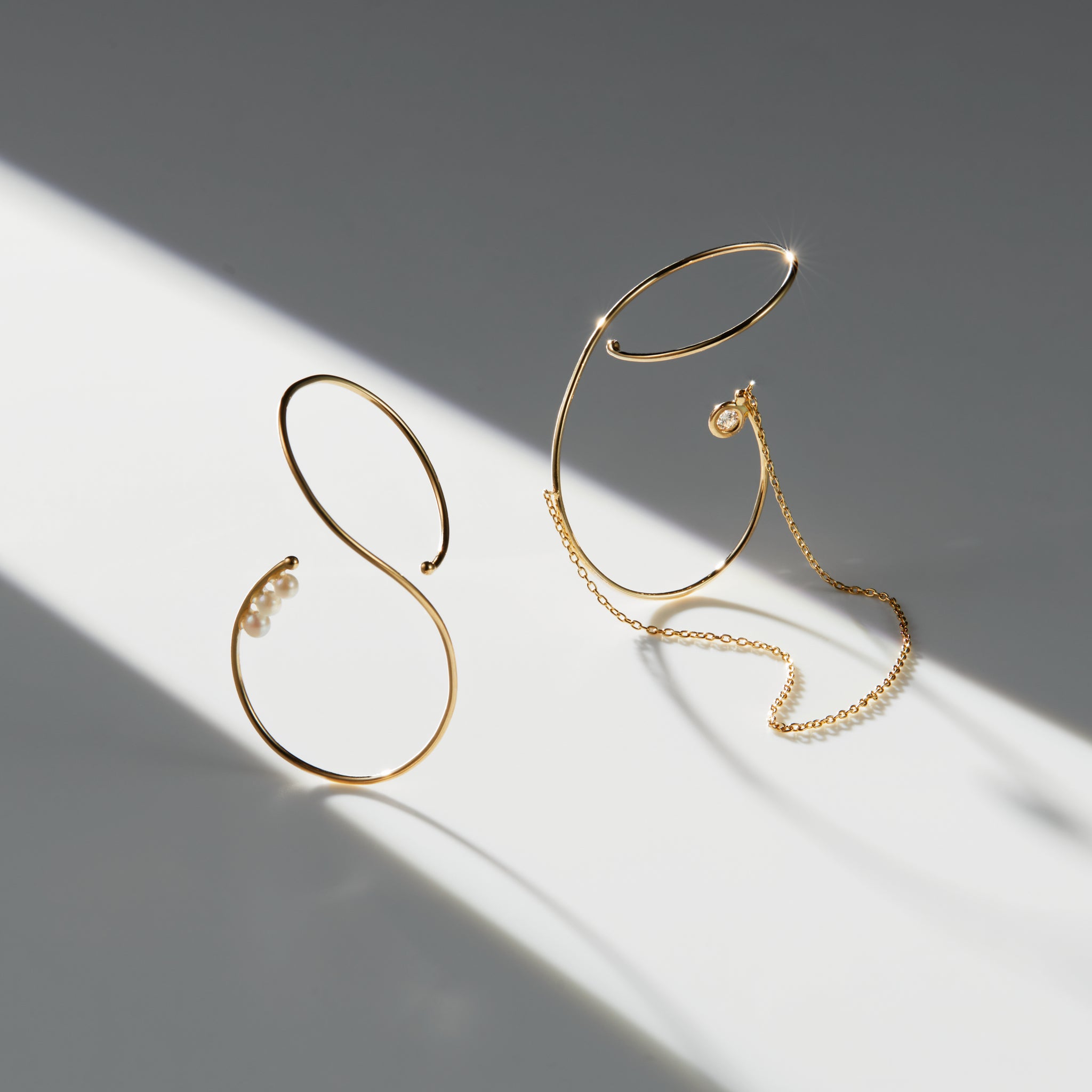 This collection is typical of Lamie, with a focus on design and functionality, including ear cuffs that propose new shapes and three-dimensional silhouettes.