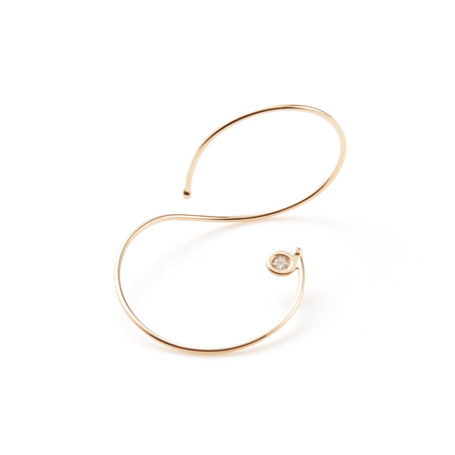 A single diamond shines on the three-dimensional and delicate design of the “S”.