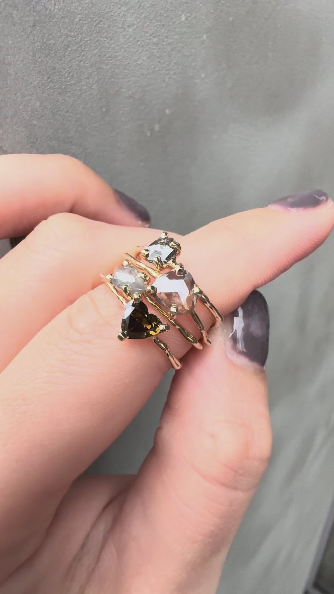 石の形に合わせて作っているリングで、すべて1点ものです。