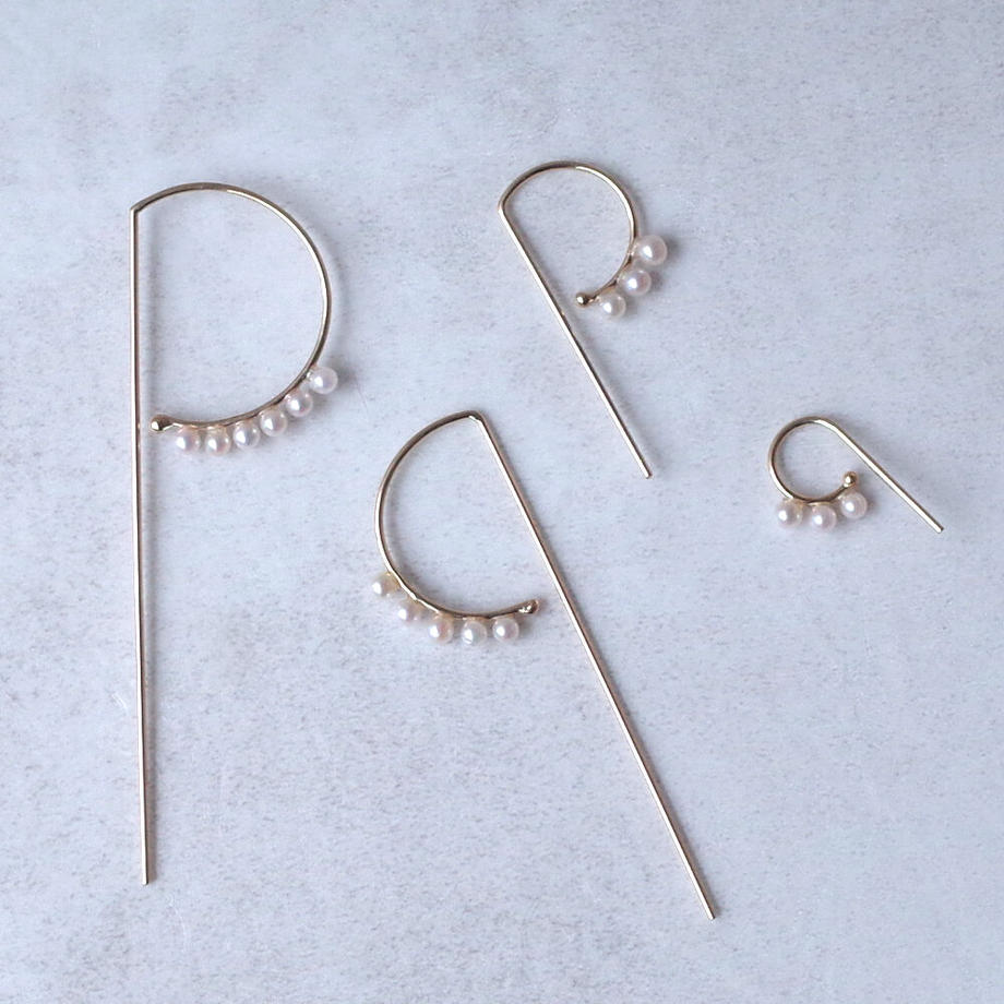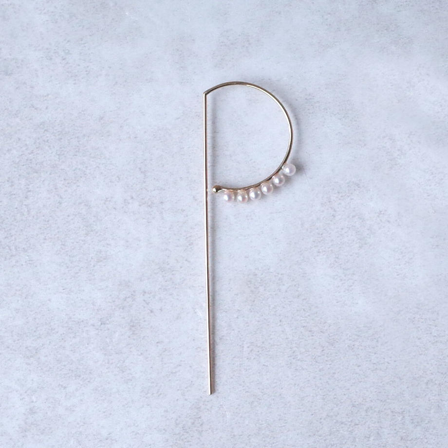 華奢なデザインの”P”に、小さなベビーあこやパールが並んでいます。