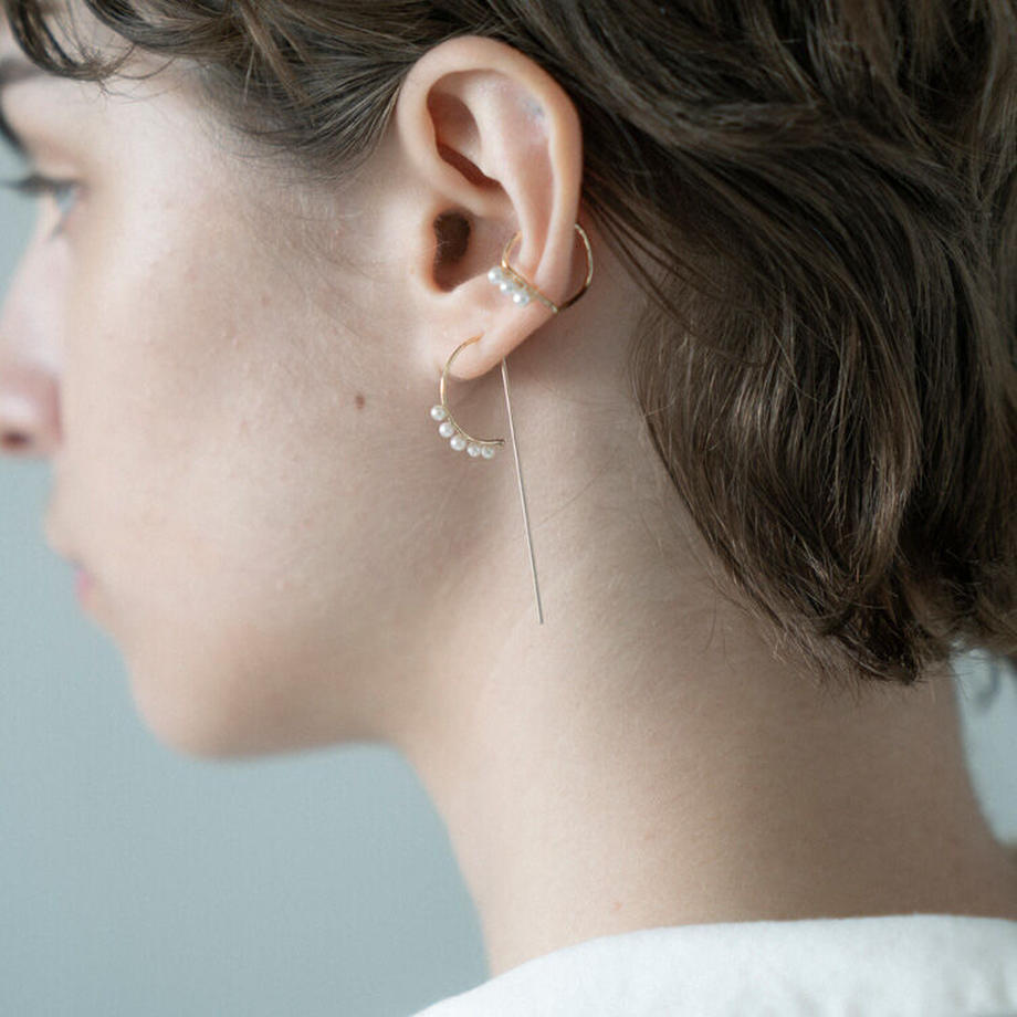 こちらのピアスは、ポストがピアスのデザインの一部となっているため、キャッチなしで着けていただけて、マスクをしていても落ちづらいデザインとなっております。
