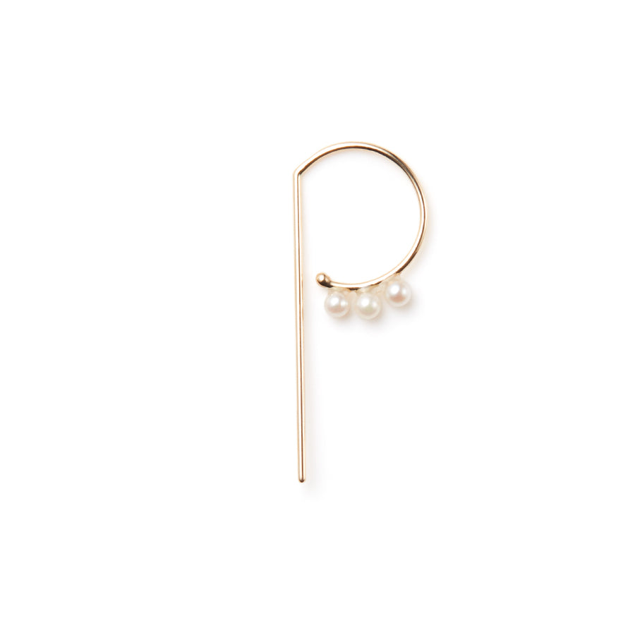 華奢なデザインの”P”に、小さなベビーあこやパールが並んでいます。