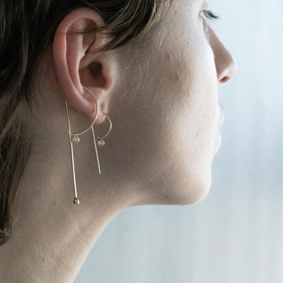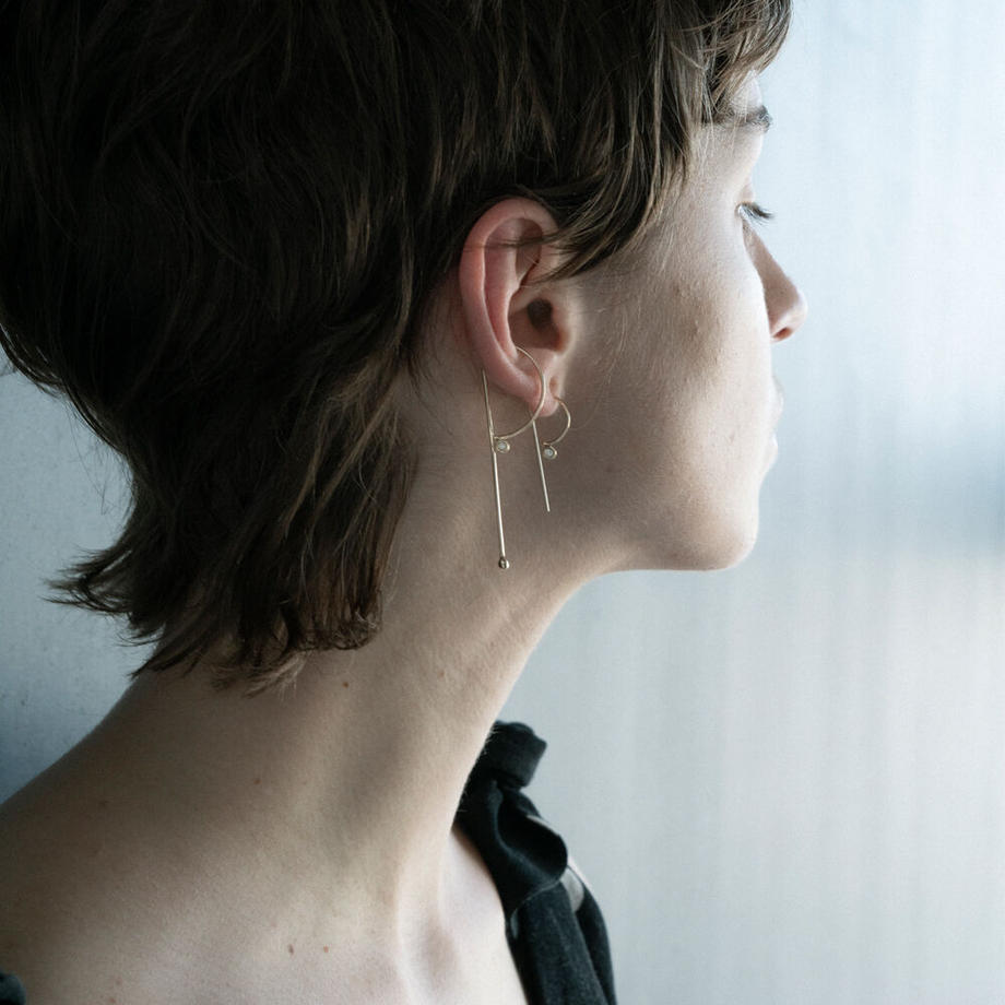 こちらのピアスは、ポストがピアスのデザインの一部となっているため、キャッチなしで着けていただけて、マスクをしていても落ちづらいデザインとなっております。