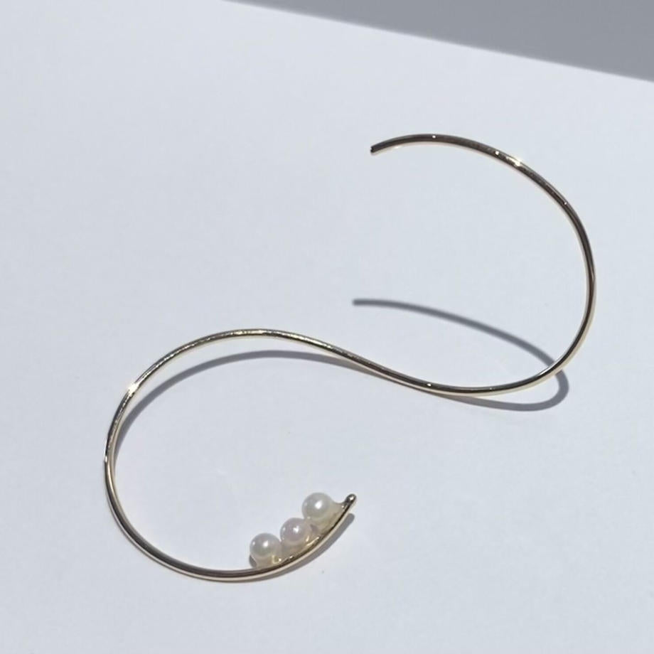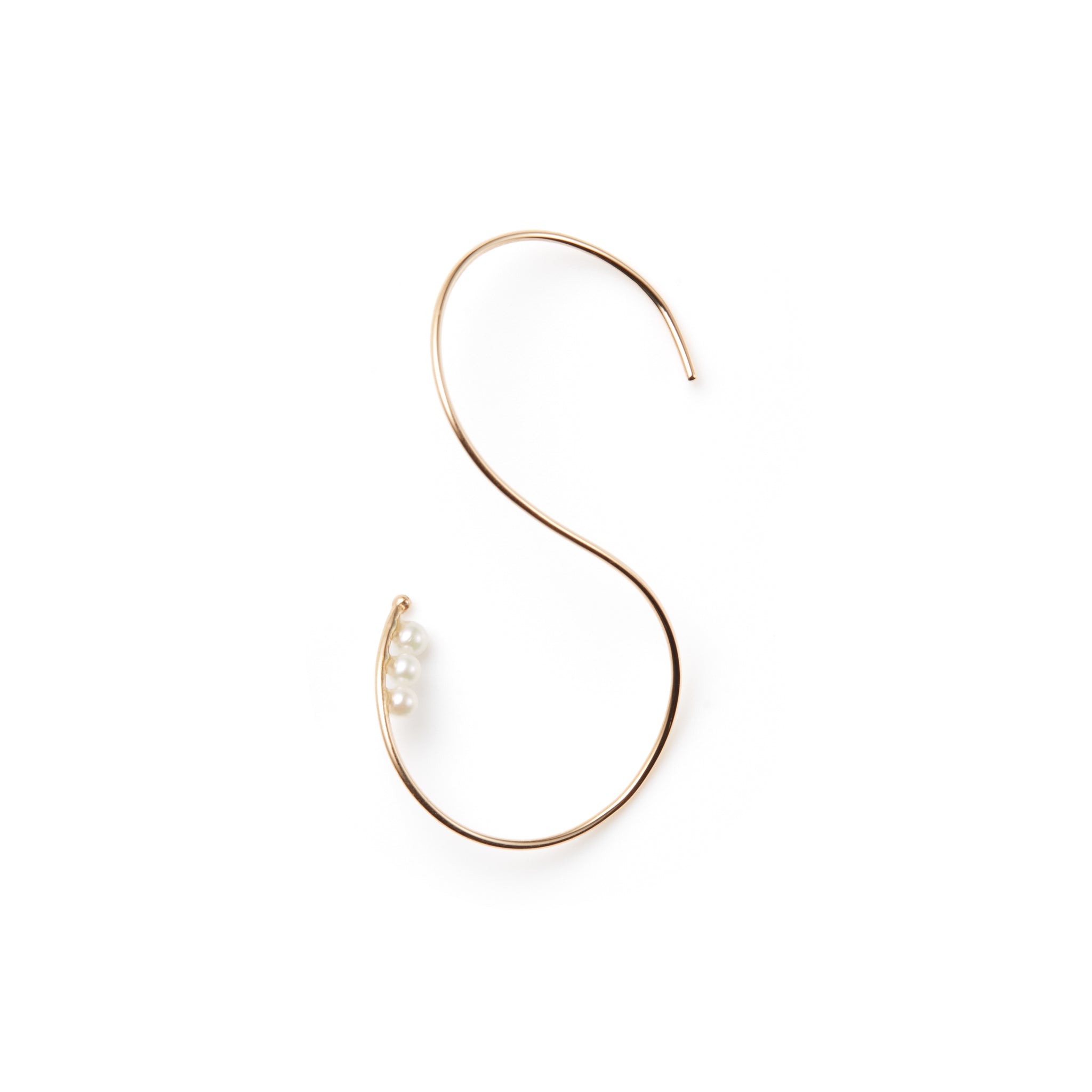 立体的で華奢なデザインの”S”に、ベビーあこやパールが並んでいます。