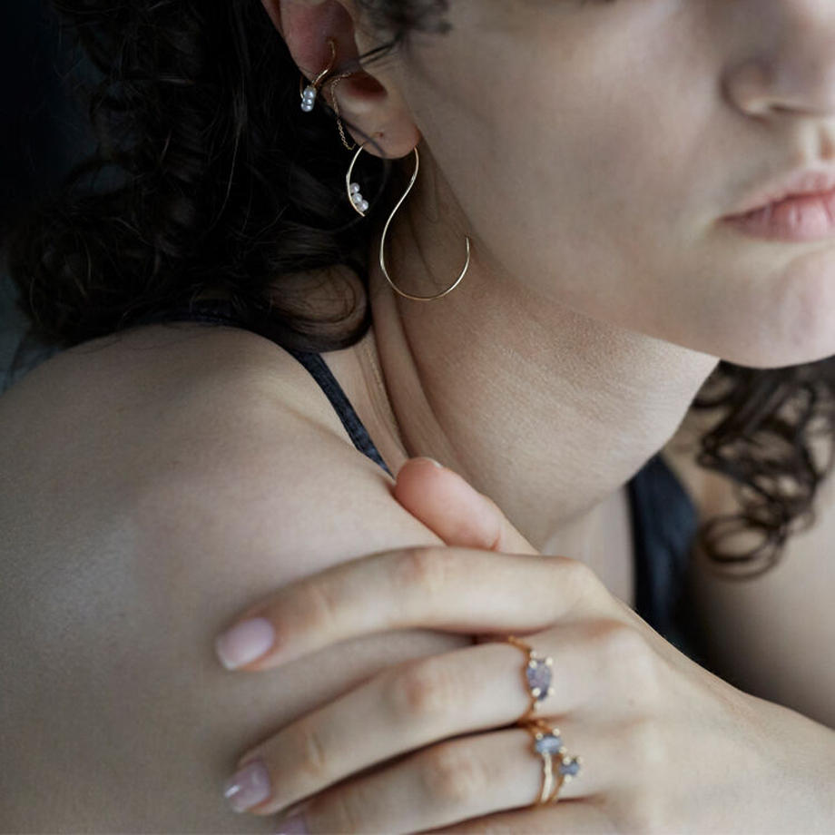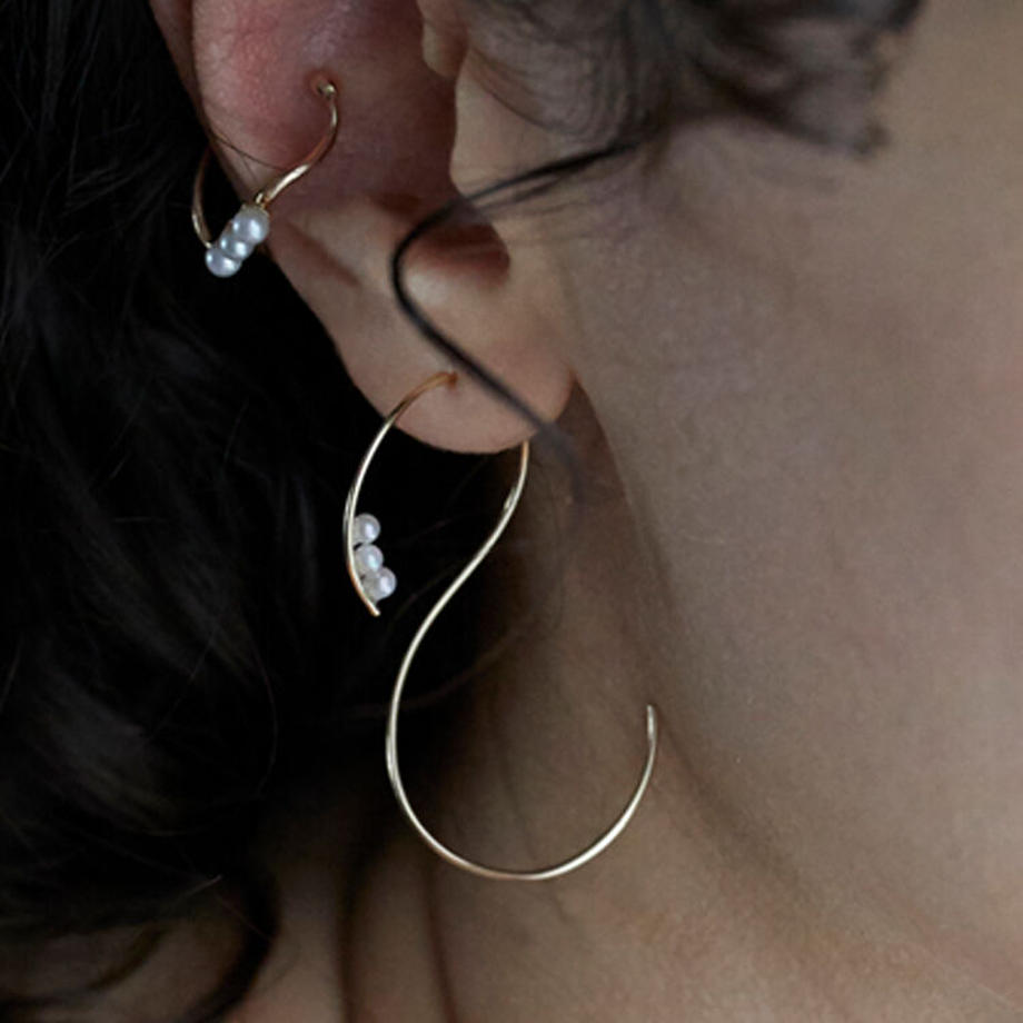 着用の際は、着用画像のようにパール部分が上になるようにくるりと耳に通してください。