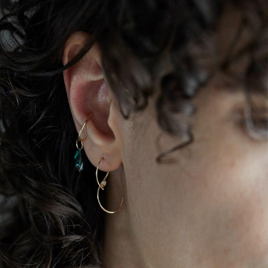 着用の際は、着用画像のようにダイヤ部分が上になるようにくるりと耳に通してください。